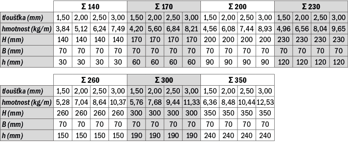 Konstrukční profily Z, C a Sigma